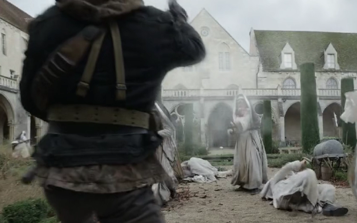 After the battle, Daryl and Isabelle prevent those who died from reanimating, including Köping, and bury the dead nuns.