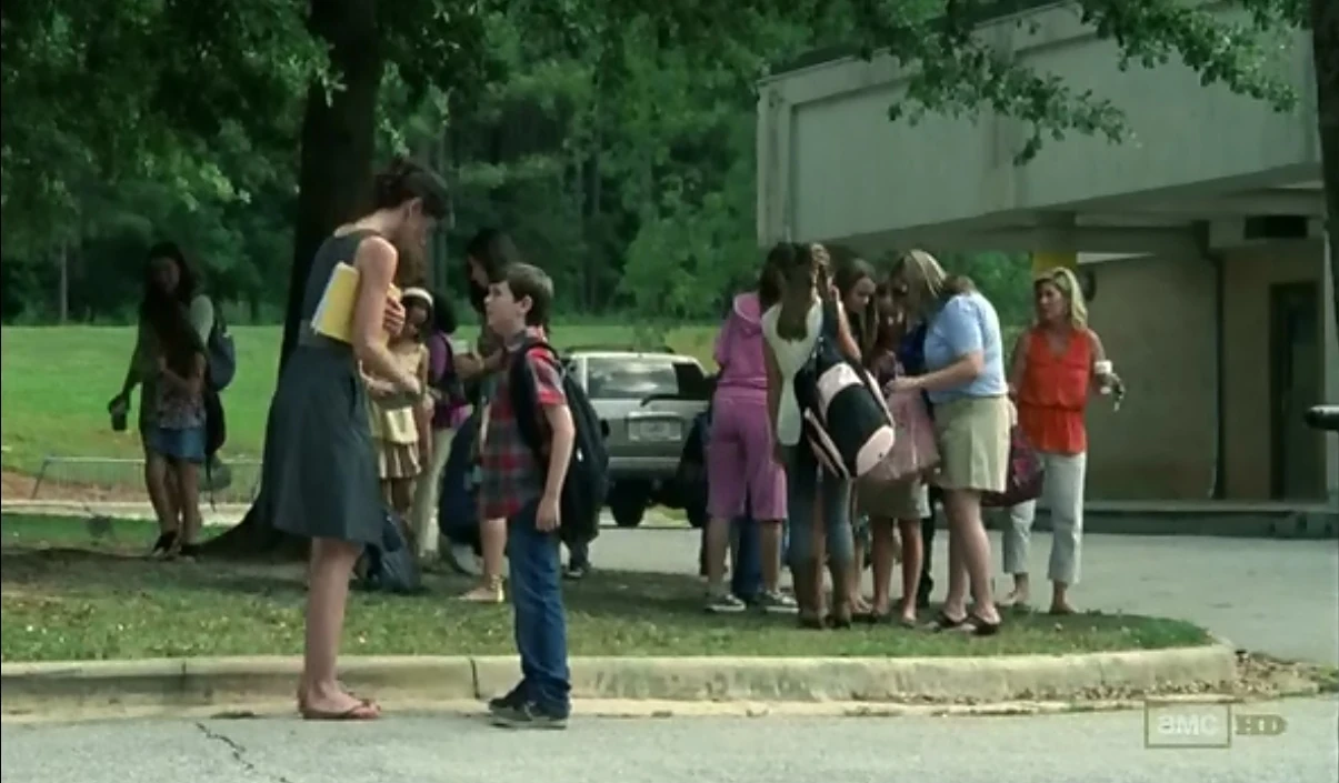 Carl Grimes attended this school along with many other children in the town due to it being the only school in the county. Carl used to wait for his mother, Lori , to come after school to walk him home. Days before the apocalypse, Lori is seen waiting outside the school to pick him up where she talks to her friend, Paula , about her situation with Rick and her family. Shane then pulls up to the school and interrupts their conversation to tell Lori that Rick has been critically injured in the line of duty and is at Harrison Memorial Hospital .