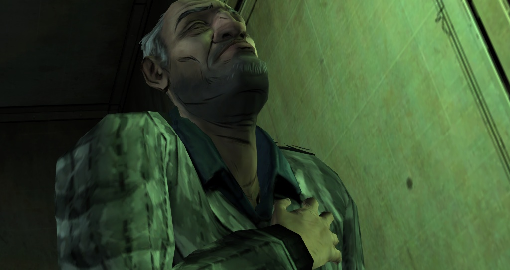 Carley shoots a walker who attacks Clementine, and the walkers outside begin to pound on the doors. After the walkers disperse, Larry begins to chastise Carley for firing her gun and attracting them. Due to the added stress, he has a flare-up and collapses to the floor. While talking to Lilly, Lee mentions Larry's temper, causing the man to curse him. Larry also periodically cries out in pain due to his condition as his daughter tries to comfort him.