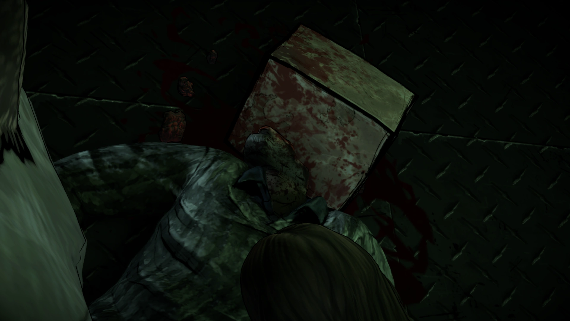 Having previously learned that the brain has to be destroyed in order to prevent reanimation, Kenny tries to convince Lee to help him prevent Larry from reanimating, even as Lilly insists he can be saved. If Lee agrees, he restrains Lilly while Kenny grabs a nearby salt lick. If Lee does not agree, Kenny either forces him out of the way or simply goes and gets the salt lick while Lee attempts chest compressions. Either way, Kenny drops the heavy object on Larry's head, instantly pulverizing the upper half of his skull. Whether Larry was still alive at the time or in the process of reanimation remains unknown.