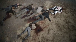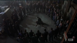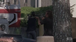 | Four unnamed people - Woodbury Army | Shot to death. | Rick Grimes Daryl Dixon |