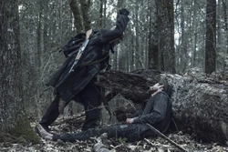 | Unnamed Hermit | Stabbed through the chest and pushed into walkers. | Michonne Hawthorne Walkers |