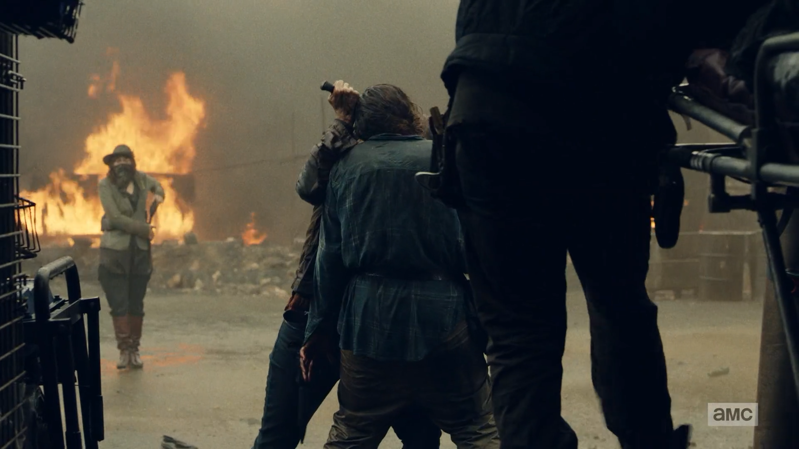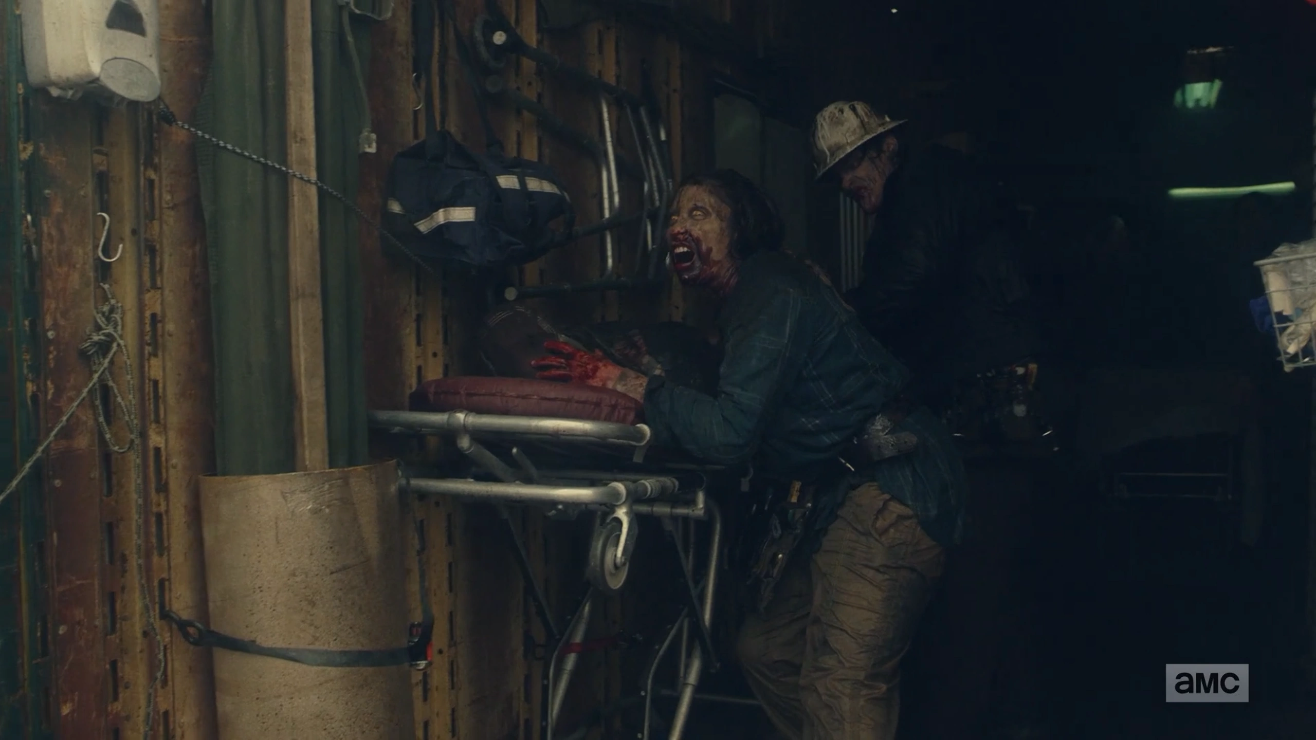The zombified Mary Anne is stabbed in the head by June.