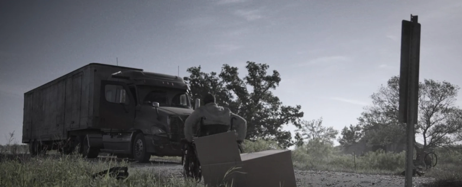 On their way back to Texas , Morgan makes his group stop at certain mile markers, such as this one, to drop off supplies for anyone who may need them.