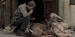 Daryl and other survivors come to Fort Connors for supplies and when Daryl cuts himself by lifting up supplies, it drops on a zombified soldier below and it wakes up the sleeping walkers and they attack the group in the Fort. Survivors like Carol are able to take out a couple walkers before they make their escape.