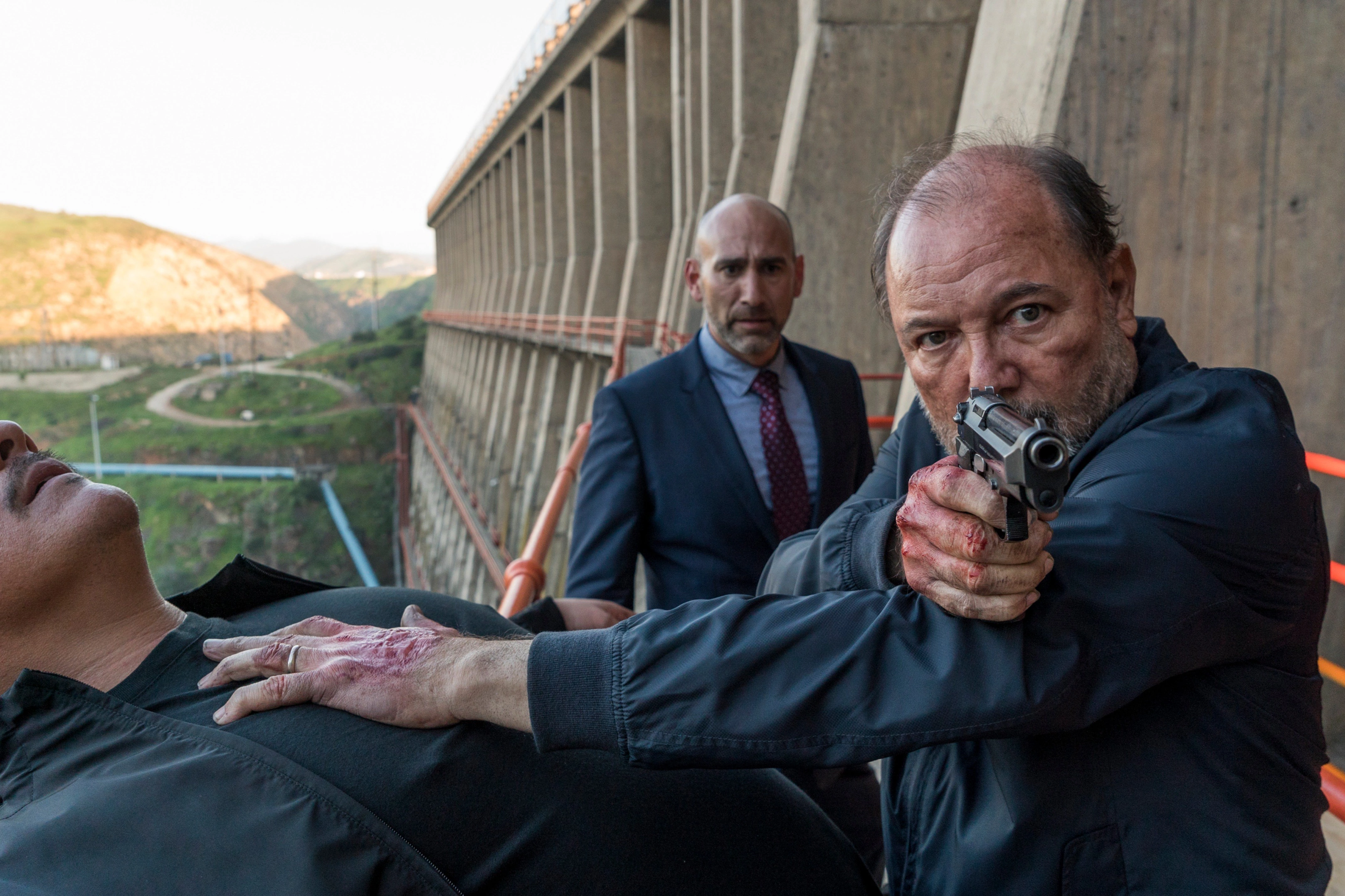 After J.C. is shot in the head, Othón runs over to Dante to protect him, but is shot in the chest by Daniel.