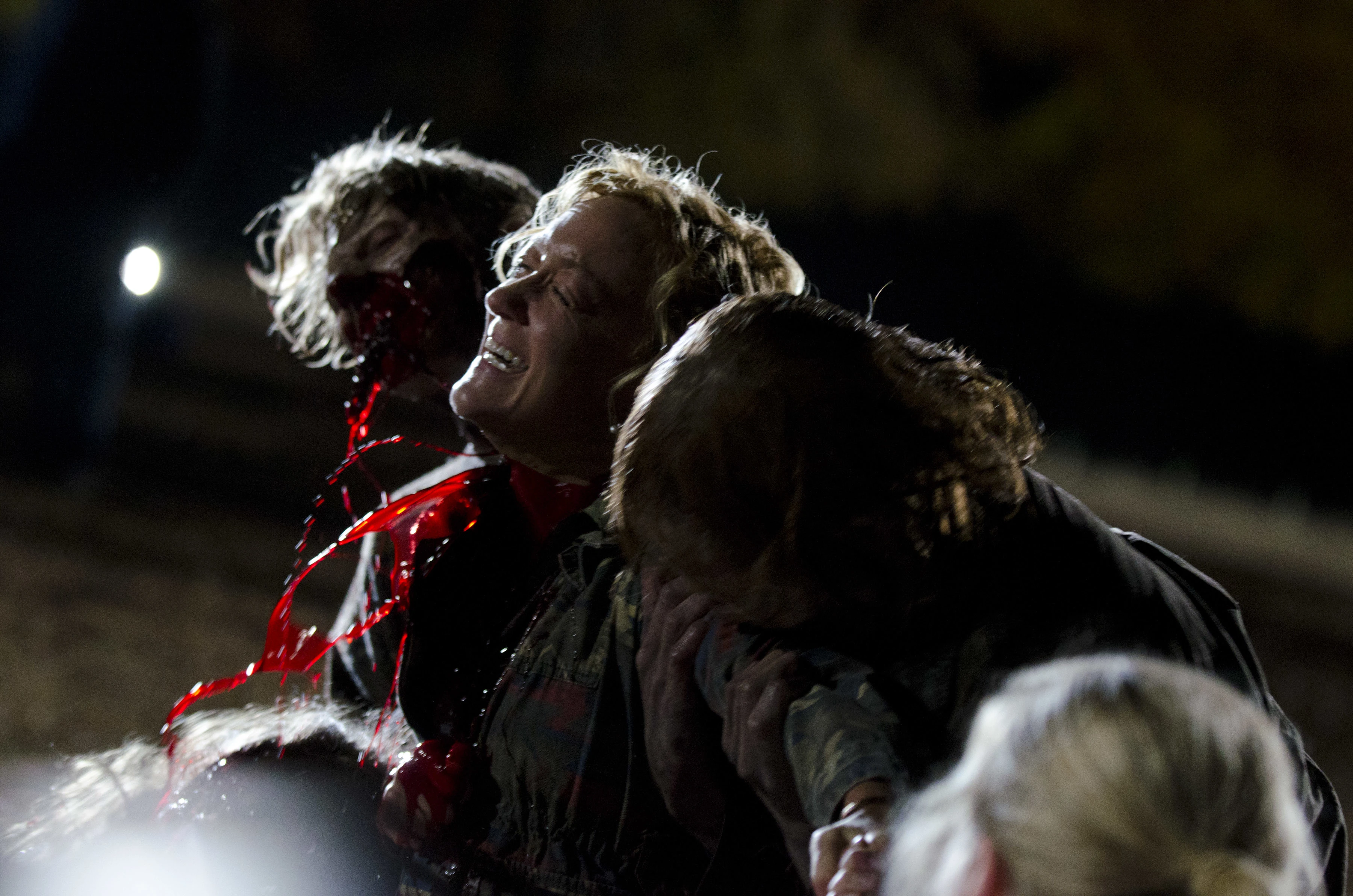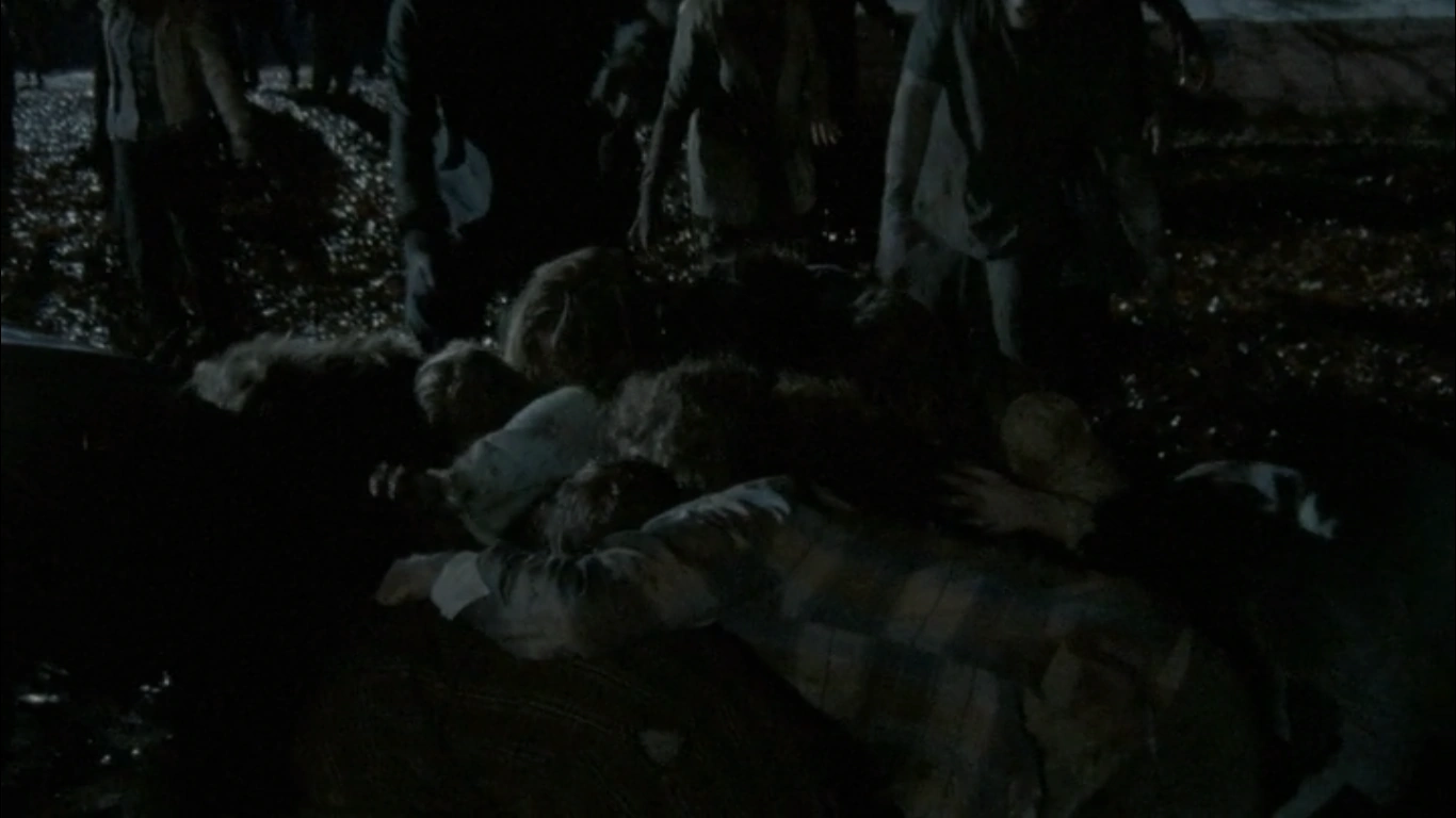 A large herd is drawn towards the farm after Carl shoots his gun to put down Shane. As Patricia attempts to escape to the car with Lori, Beth, and Carol, a walker grabs her from behind a car and bites her on the neck. Soon, she is grabbed by other walkers who proceed to devour her.