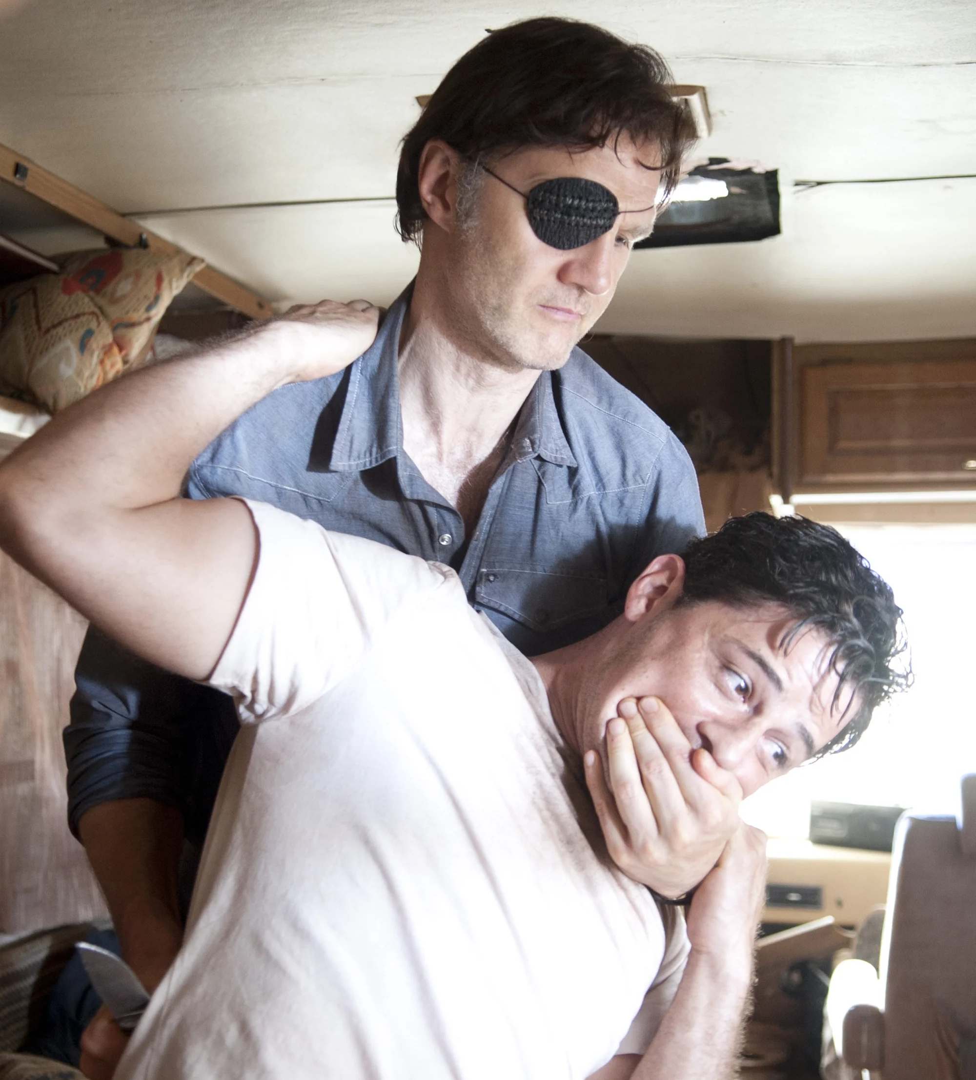 The Governor, believing Pete to be weak and unworthy of leadership, goes to his RV to talk. When Pete turns to face him, The Governor stabs him in the back and then brutally strangles him to death without remorse.