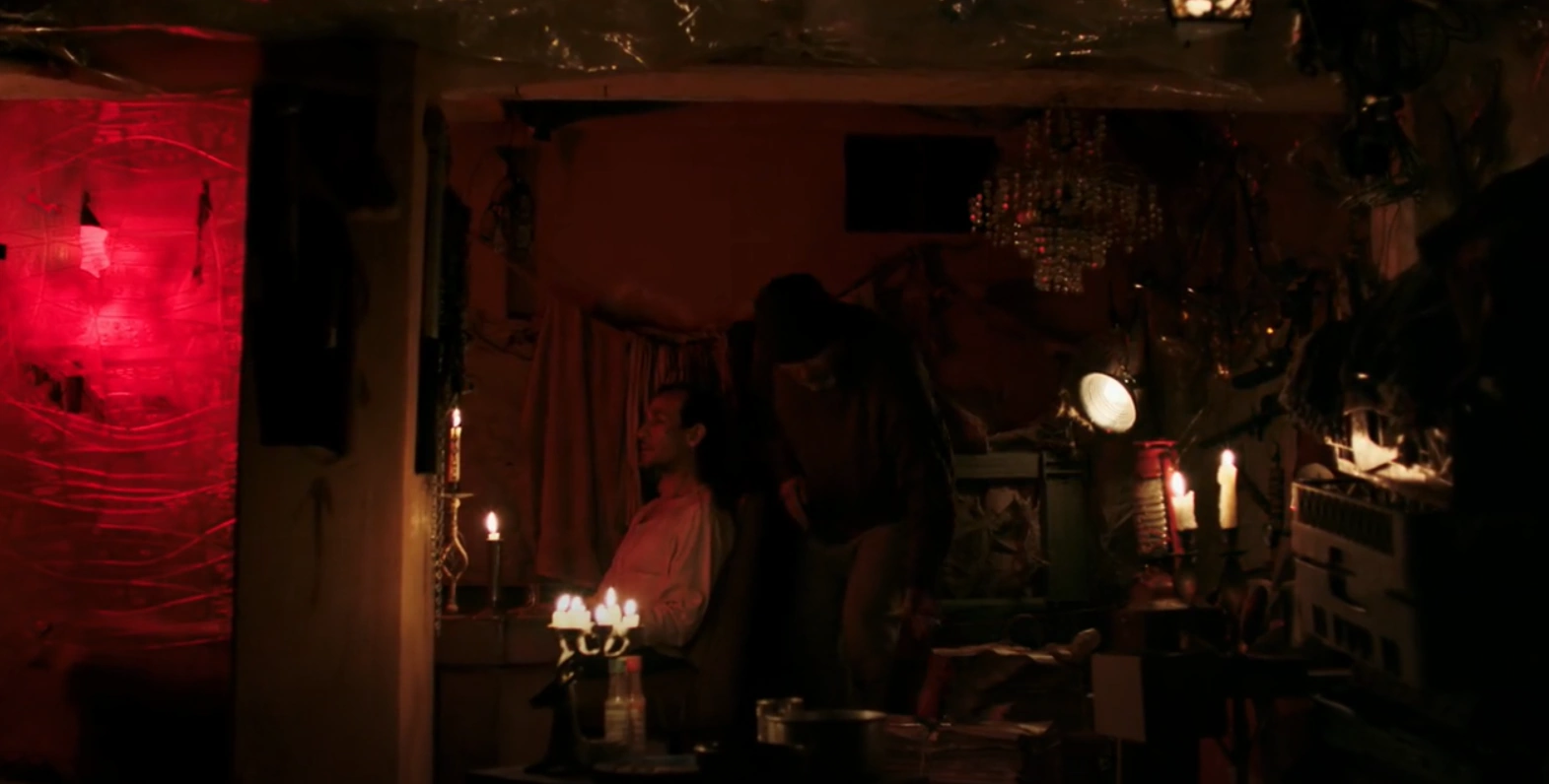 Efraín and Daniel eat dinner at Efraín's hideout, which is located within the plaza. Daniel wants to repay Efraín for saving his life. The only thing he can offer Efraín is a proper haircut.