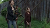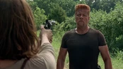 "Them" | Maggie (alongside Sasha) pulls her M&P R8 on Aaron as they meet for the first time. |