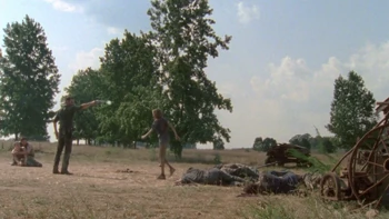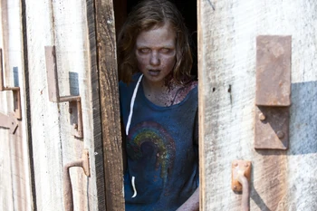 After learning that walkers are being kept in the barn on Hershel's farm, Shane breaks open the door of barn, where dozens of walkers spill out of. Shane and the group take out the walkers. As the last walker emerges, stumbling out of the barn, the group are stunned and shocked to see that the walker is Sophia. Carol, beyond devastated, tries to run to Sophia, however Daryl stops her. The group look on in shock and sadness as Sophia slowly approaches them. Rick takes lead from Shane, walks up, and shoots a reanimated Sophia in the head, ending her suffering.