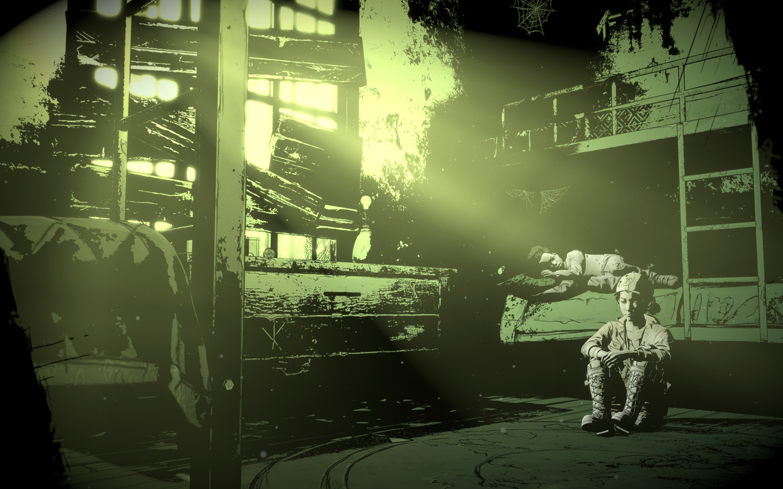 The fighting over, the other children all step into the courtyard as Clementine nearly collapses from exhaustion. Daylight breaks on the ashen grounds, showing the number of walkers they had killed. Clementine stands and walks over to Tennessee, who sits traumatized near the gates. Tennessee stands and apologizes to her for trusting Lilly.