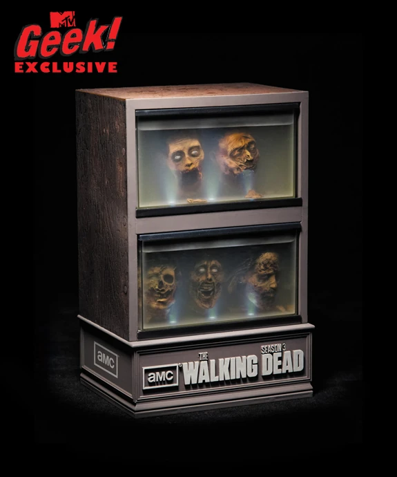 The Walking Dead: The Complete Third Season (Limited Edition), is a limited edition Blu-ray set containing the third season of The Walking Dead within two fishtanks with zombie heads inside. The tanks are based on The Governor's tanks in the TV Series. The DVD set went on sale August 27th, 2013, with a list price of $149.00.