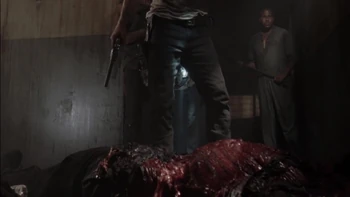 After the attack on the campsite, T-Dog helps everyone else hack up the corpses of their former fellow survivors to stop them from reanimating. They all head back onto the road shortly afterward, planning to head to the CDC.