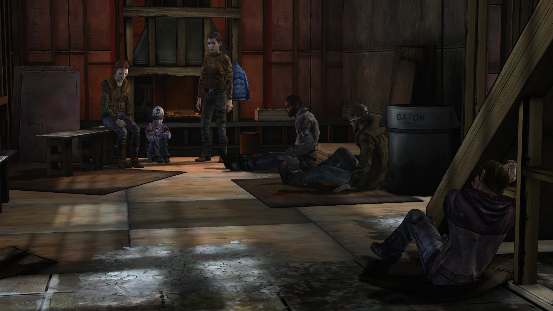 Upon entering, she finds Jane and AJ in a different room, to which Jane replies that she moved AJ after Mike and Arvo didn't stop talking. The two discuss Kenny's increasing anger outbreaks as well as past memories within the apocalypse. Clementine will also comfort AJ when he begins to cry, but their conversation is quickly cut short as Kenny manages to successfully get the truck working again, and Clementine runs outside to see.