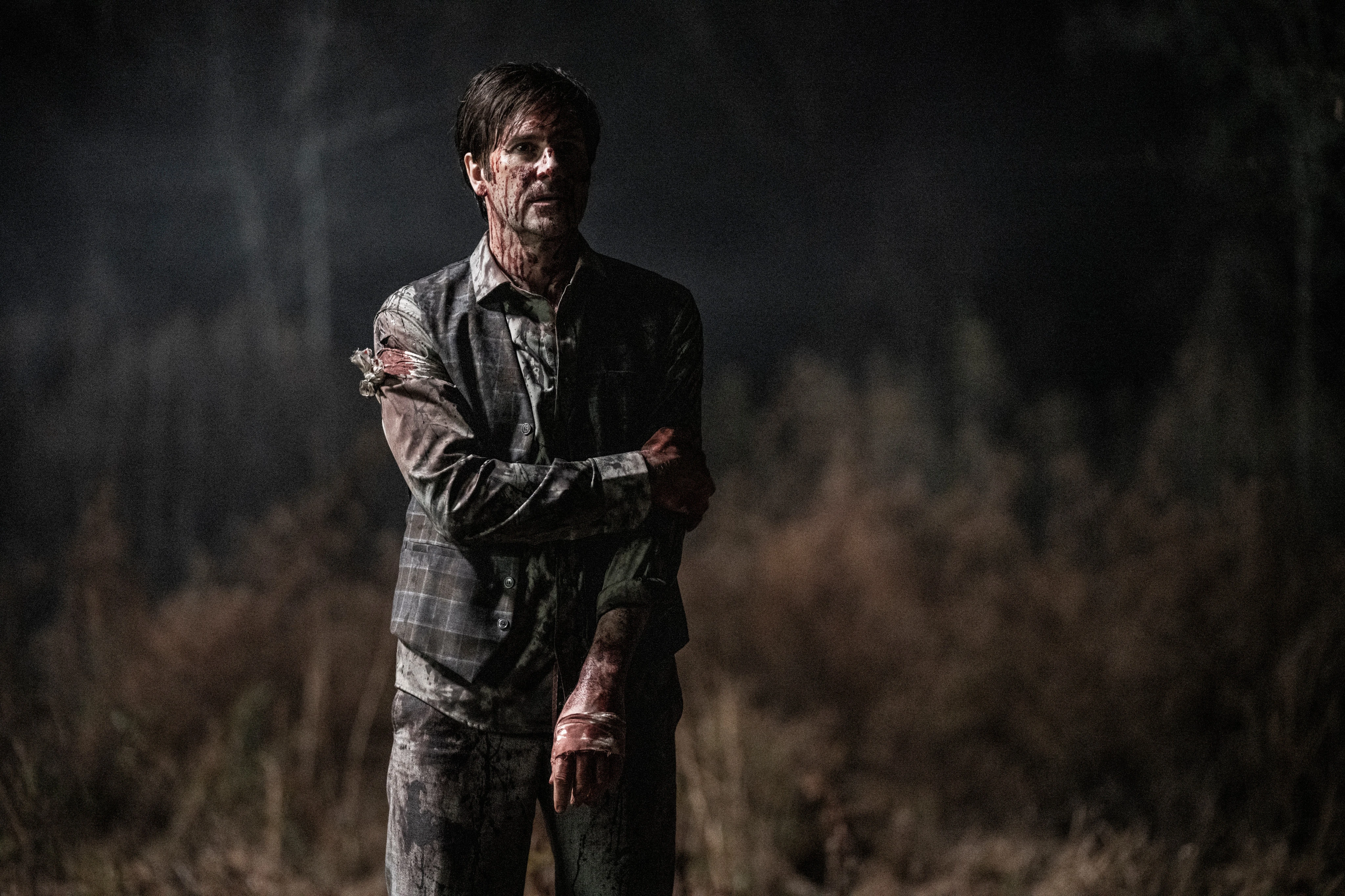 Carol sneaks through the streets, dodging patrolling soldiers and hiding until her pursuers have passed. Once they're gone, Carol runs back the way that she came. Arriving at the Coalition's wagon, Carol finds it abandoned with supplies strewn around and a trail of blood. Hearing the sounds of a fight from a nearby building, Carol moves to investigate. Inside, Daryl is being strangled by an attacker who has already been stabbed by him in the shoulder, while a third man lies dead nearby, having been killed by Daryl in the fight. As the man shrugs off all of Daryl's desperate attacks, his partner begins to reanimate and Carol hits him over the head from behind, saving Daryl's life. Grabbing his remaining knife, Daryl prepares to fight the man again, before his zombified partner rises up and bites the man in the neck from behind. Taking advantage of the distraction, Daryl stabs both men in the head, killing them, and retrieves his other knife. Recovering, Daryl tells Carol that they took the kids, but Carol corrects him that everyone has been taken.
